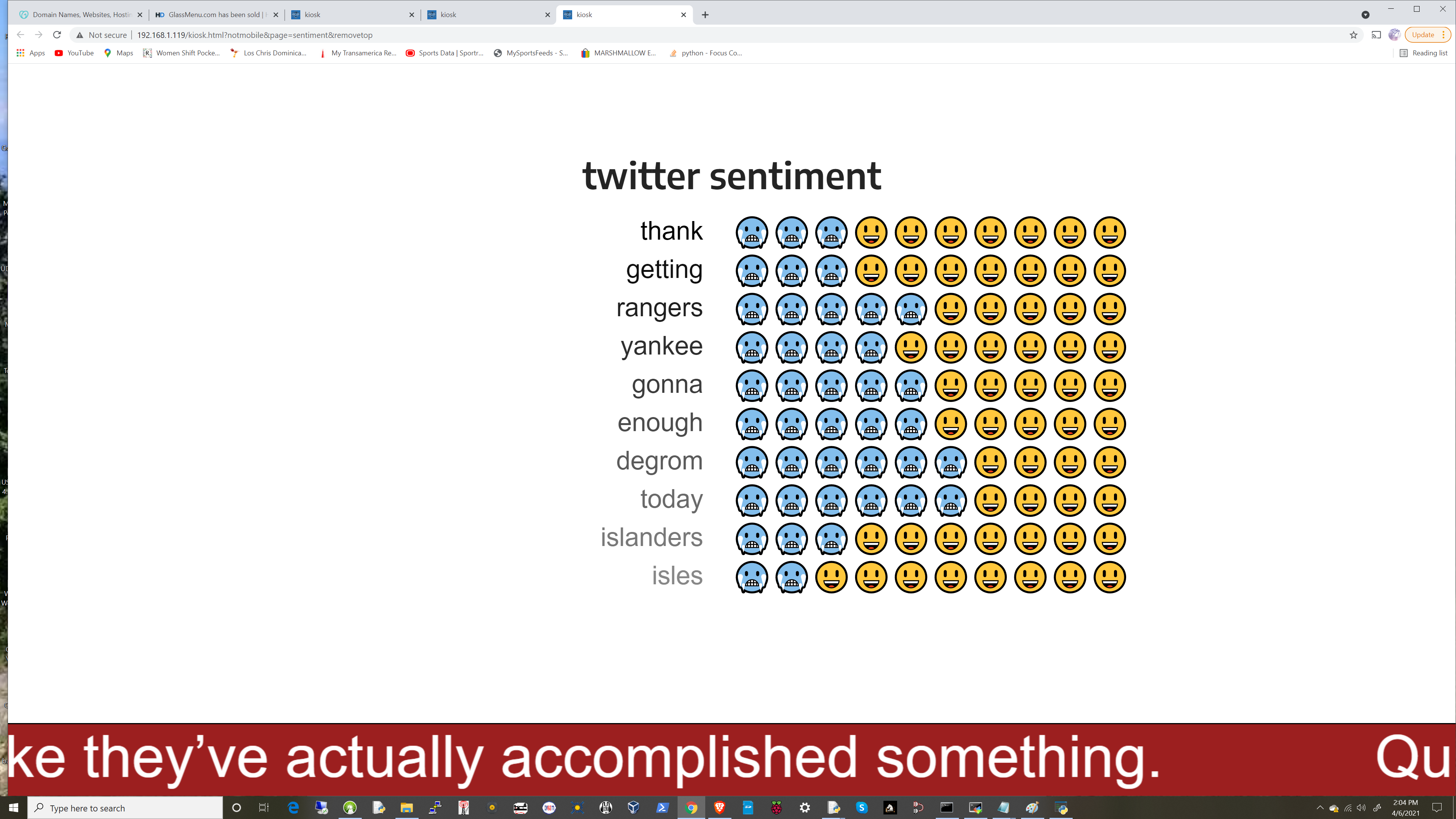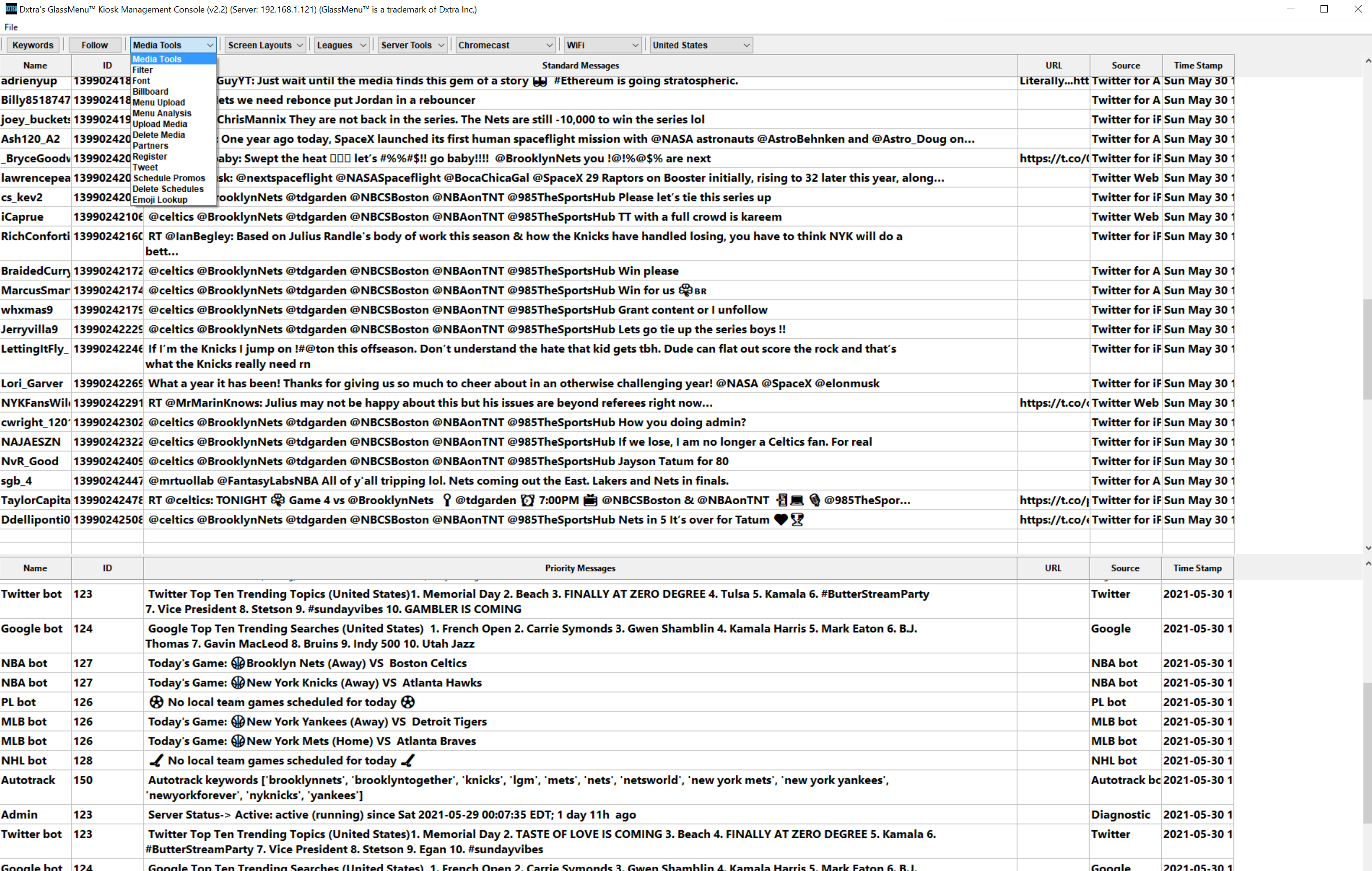 Each retail location can be customized on-the-fly with it’s own locally generated content literally within minutes. System management is easy with our Windows 10 based software interface. Really, the possibilities for customer interaction and retention are endless with this platform. For cable TV providers or ISP’s, this new web platform enables a real opportunity to expand beyond the traditional “triple play” bundle and can include your proprietary feeds. International language and emoji support is built-in as is the ability to stream Tweets in local languages from over 60 countries. For ISP’s, we provide an enterprise-class remote updating solution that can run in your own Network Operations Center. Please contact us with any questions.
