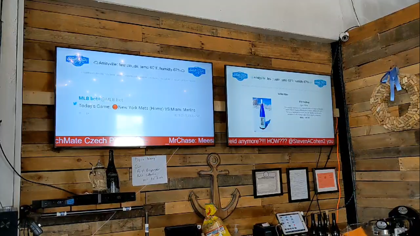 Other solutions on the market may give you a menu or other feature. Glassmenu™ gives you over a dozen features included at an extremely low month cost. If you would like a special feature we can easily add it. This is the first product on the market that directly integrates the real-time Twitter feed. Basically all you do is add “keywords’ on any topic, and they will be automatically filtered for display on the big screen. A database of Twitter tracking handles for every sports team in built into the software. The sports bar operator can watch as daily games are automatically followed on Twitter in real-time. A fan favorite is to have our screen running next to the traditional TV game screen.